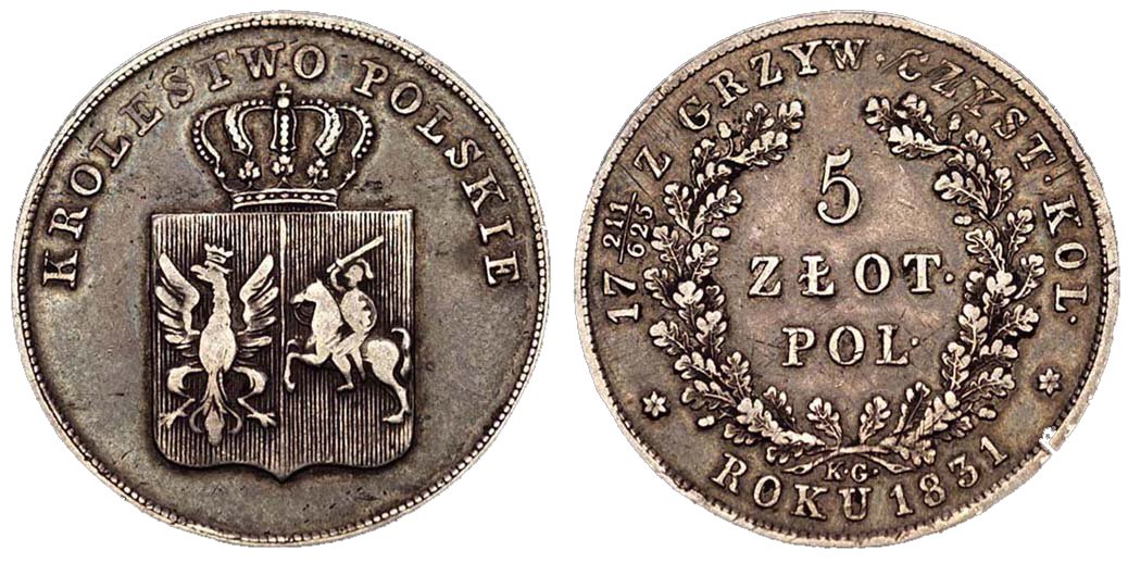 5 złotych polskich, Polish currency unit from 1831