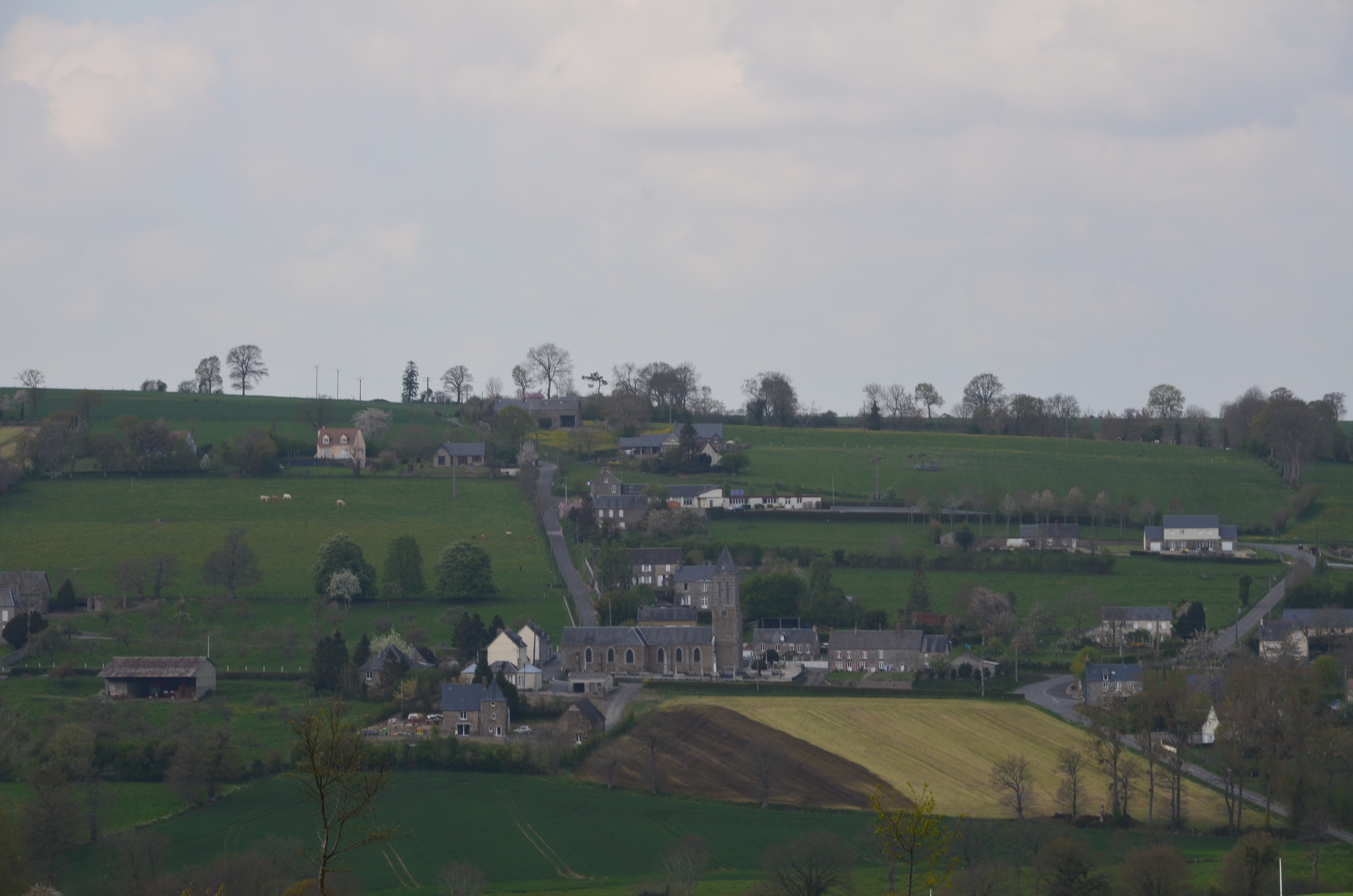 Français : Vue sur le bourg de Presles depuis le lieu-dit Le Bas Perriers |