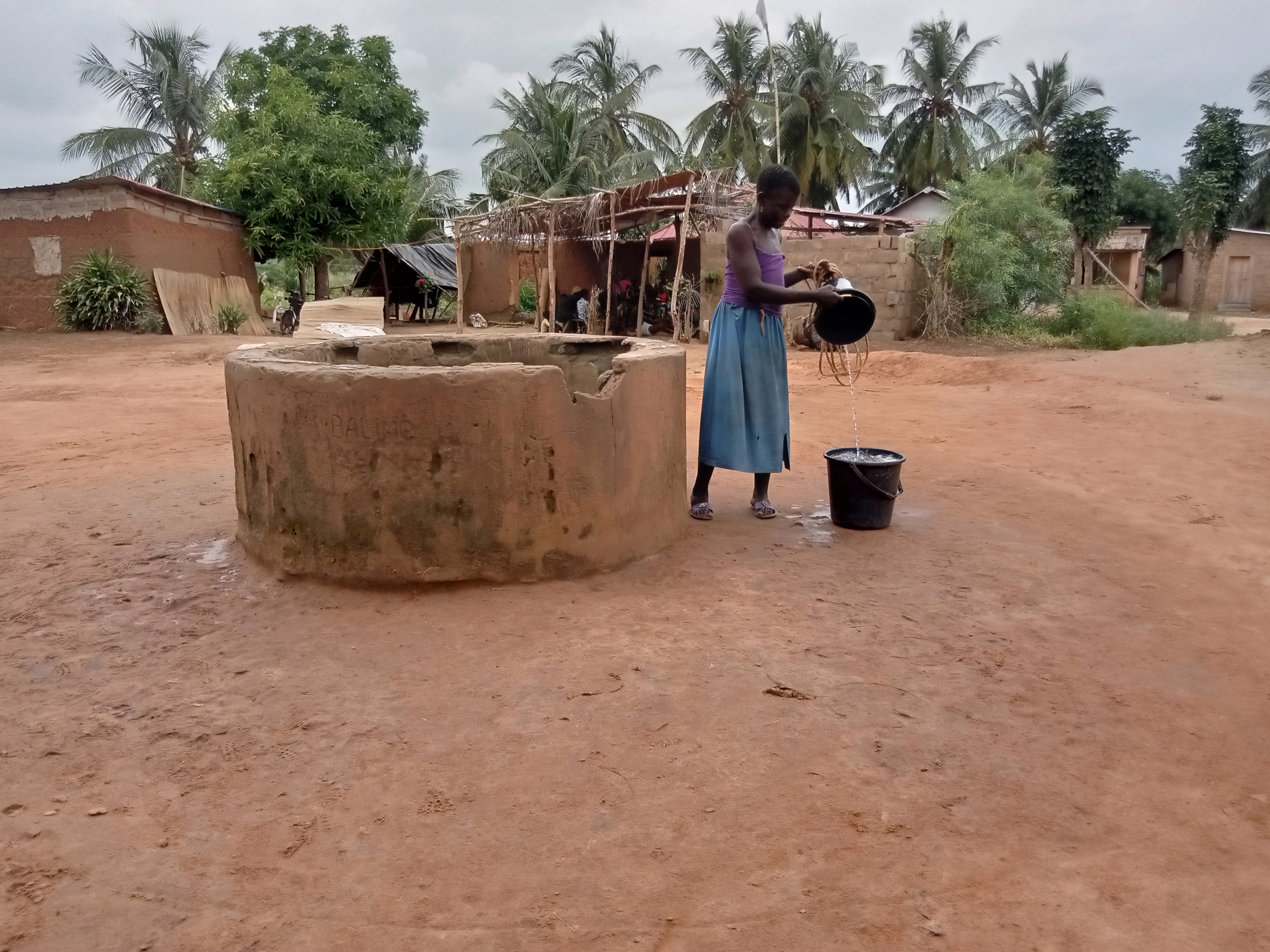 Français : Puiser de l'eau dans un puit dans le village au Togo |