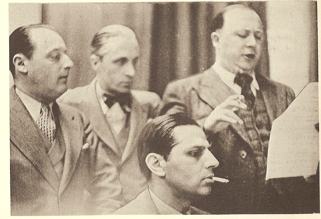 Français : Enregistrement de la Fête Fantastique: G.Truc, vellones, Medus. Au piano, Jaubert Deutsch: Einstudieren von Vellones' Fête Fantastique: de:Georges Truc, de:Pierre Vellones, fr:Henri Médus. Am Klavier: de:Maurice Jaubert (um 1937) |
