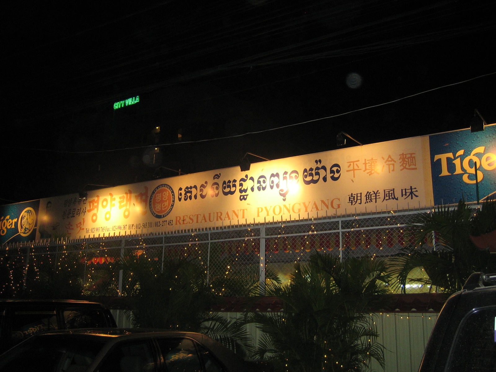 English: Sign for the Pyongyang Restaurant in Phnom Penh. |