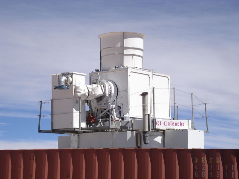 English: The QUIET cosmic microwave background (CMB) polarization telescope, at the Llano de Chajnantor Observatory in Atacama, Chile. |