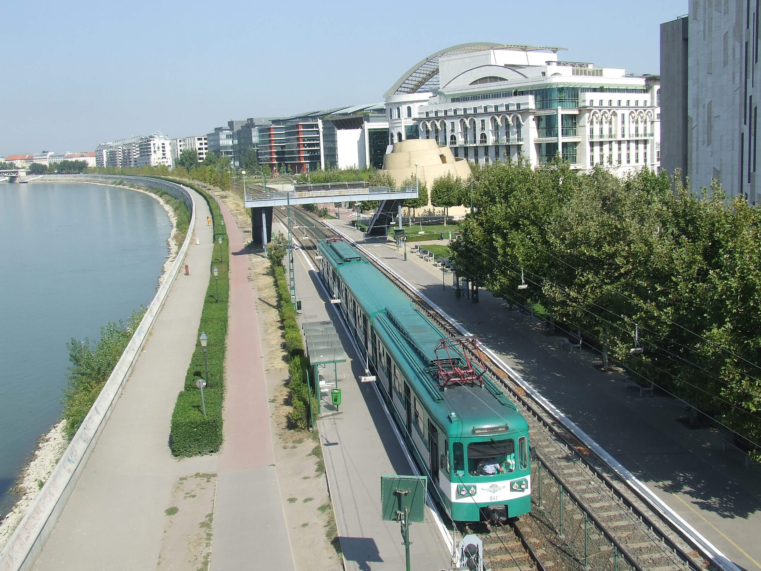English: Suburban railway (HÉV), at Rákóczi bridge, Budapest |