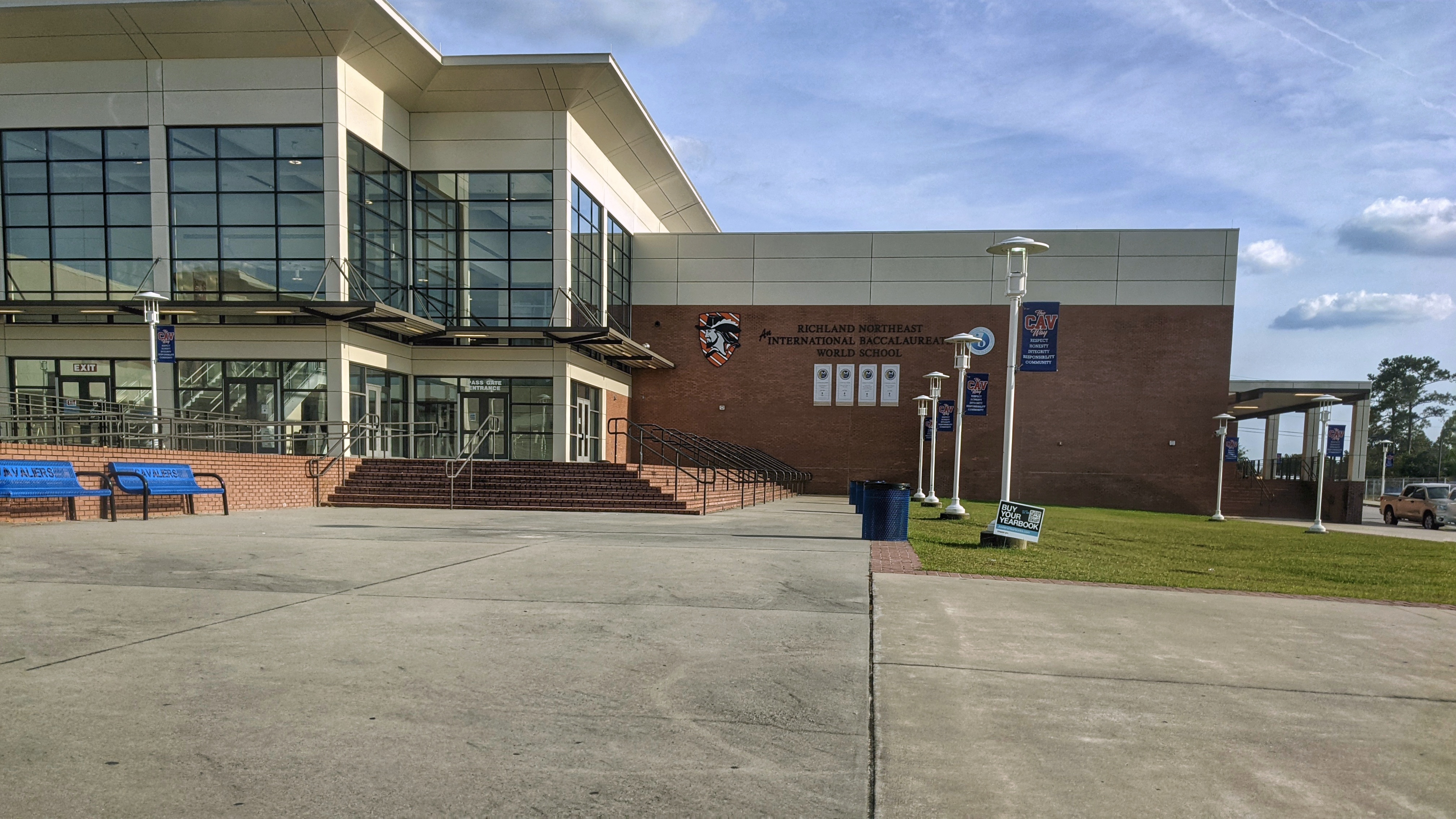 English: Richland Northeast High School viewed from the parking lot. Taken October 14th, 2021 and touched up with Snapseed. |