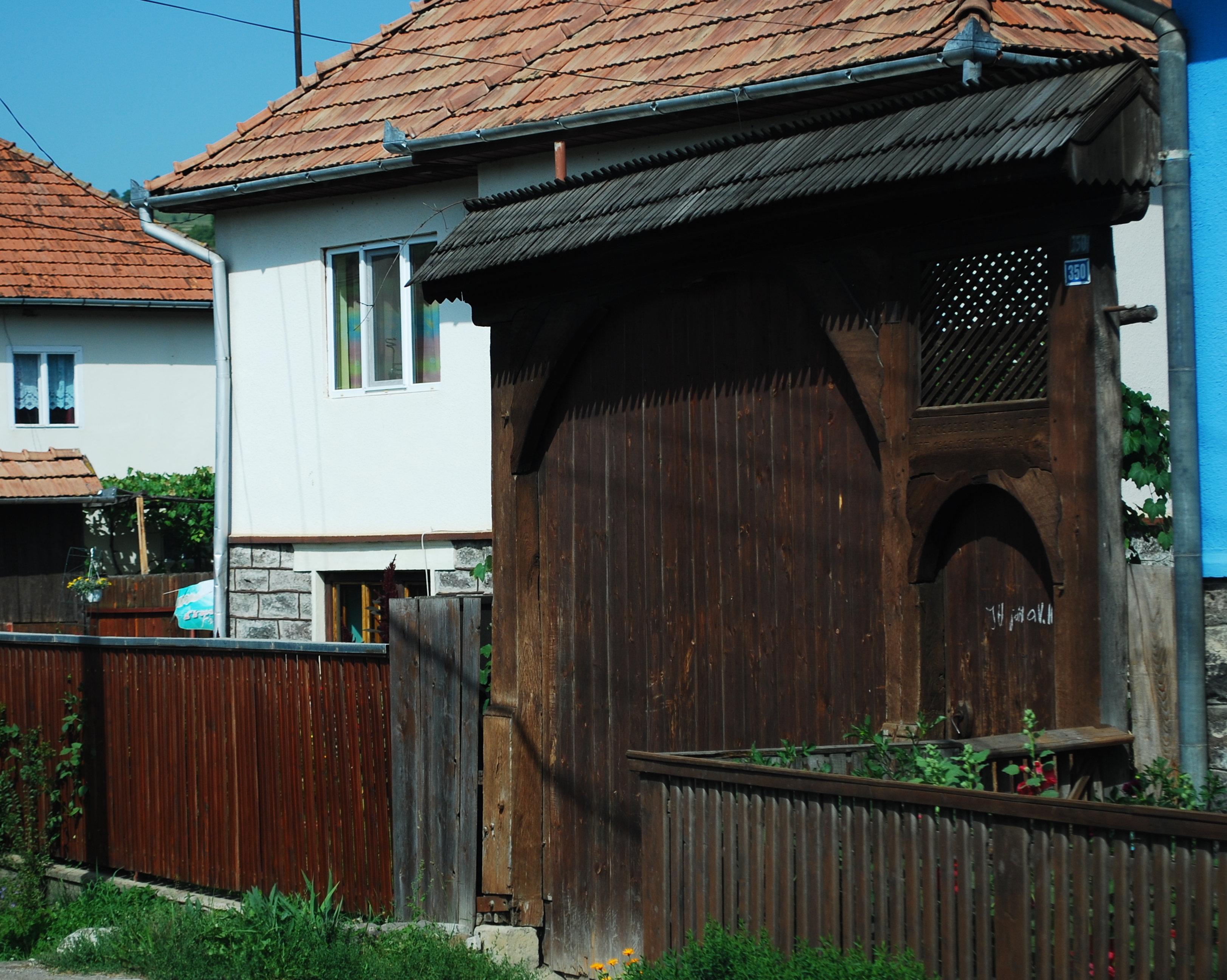 English: Szekler gate in the Satu Mare village, Harghita County, Romania