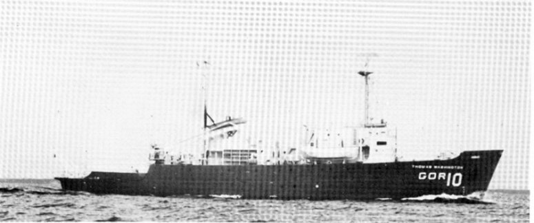English: R/V Thomas Washington (AGOR-10) underway, date and location unknown.