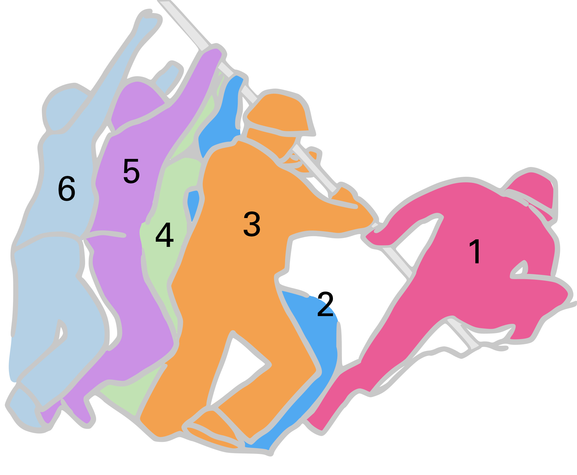 Diagram of the six Marines raising the second flag on Iwo Jima:
