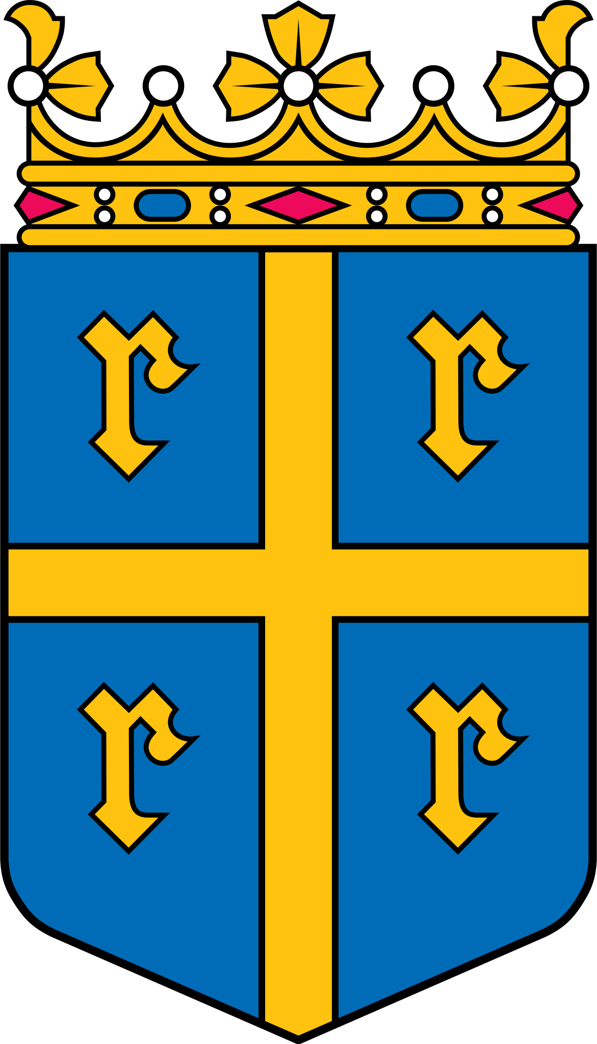 Blazon: (Finnish) English: On blue shield divided by a Latin cross four minuscule r-letters, one in each four division of the field. |