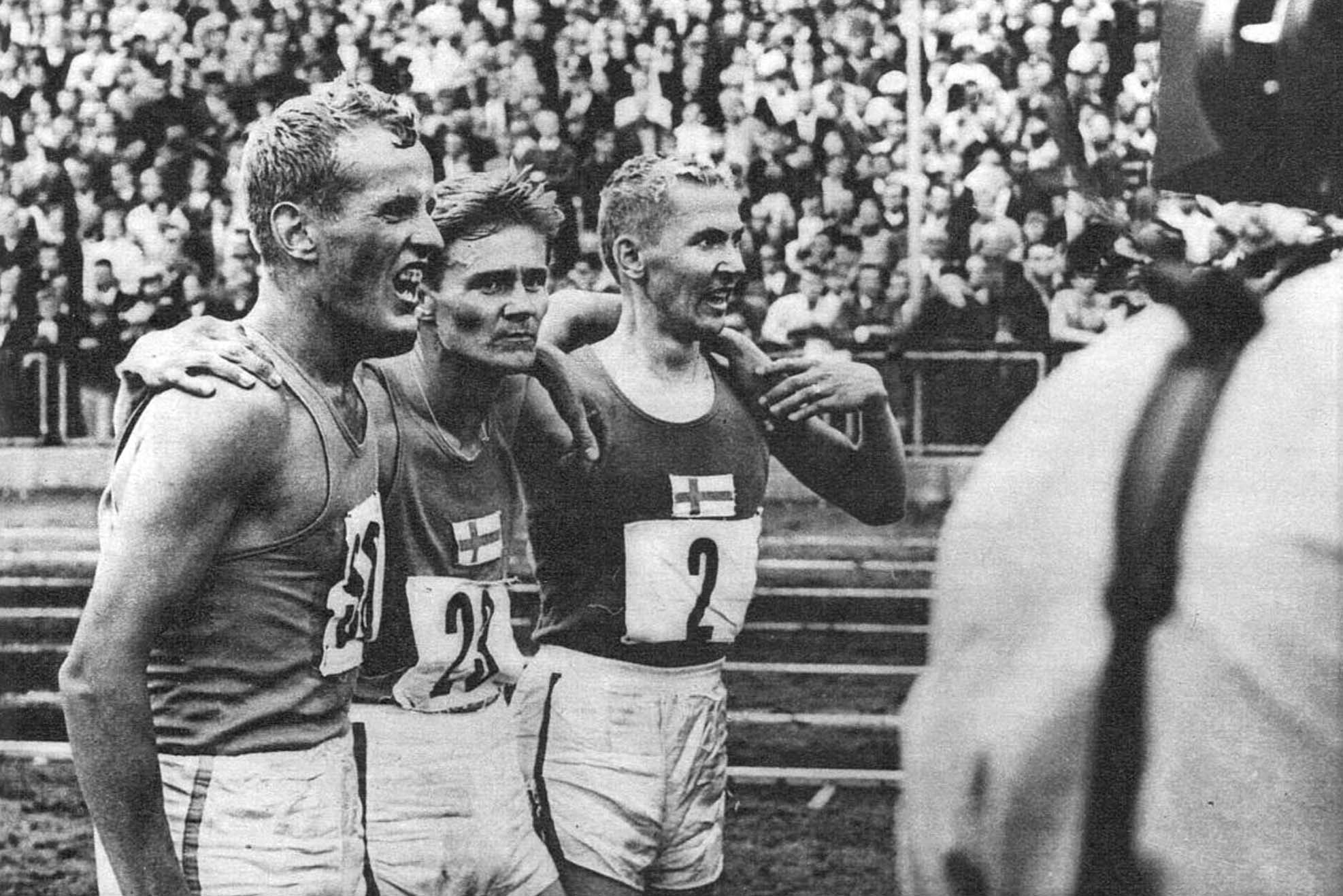 English: Finnish long distance runners after a 10,000 meter race against Sweden in 1967 |