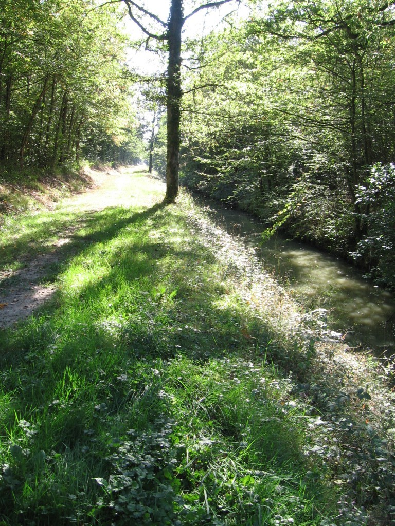 Français : Rigole de Courpalet, sur la commune de Lorris dans le Loiret. Elle alimente en eau le canal d'Orléans. |