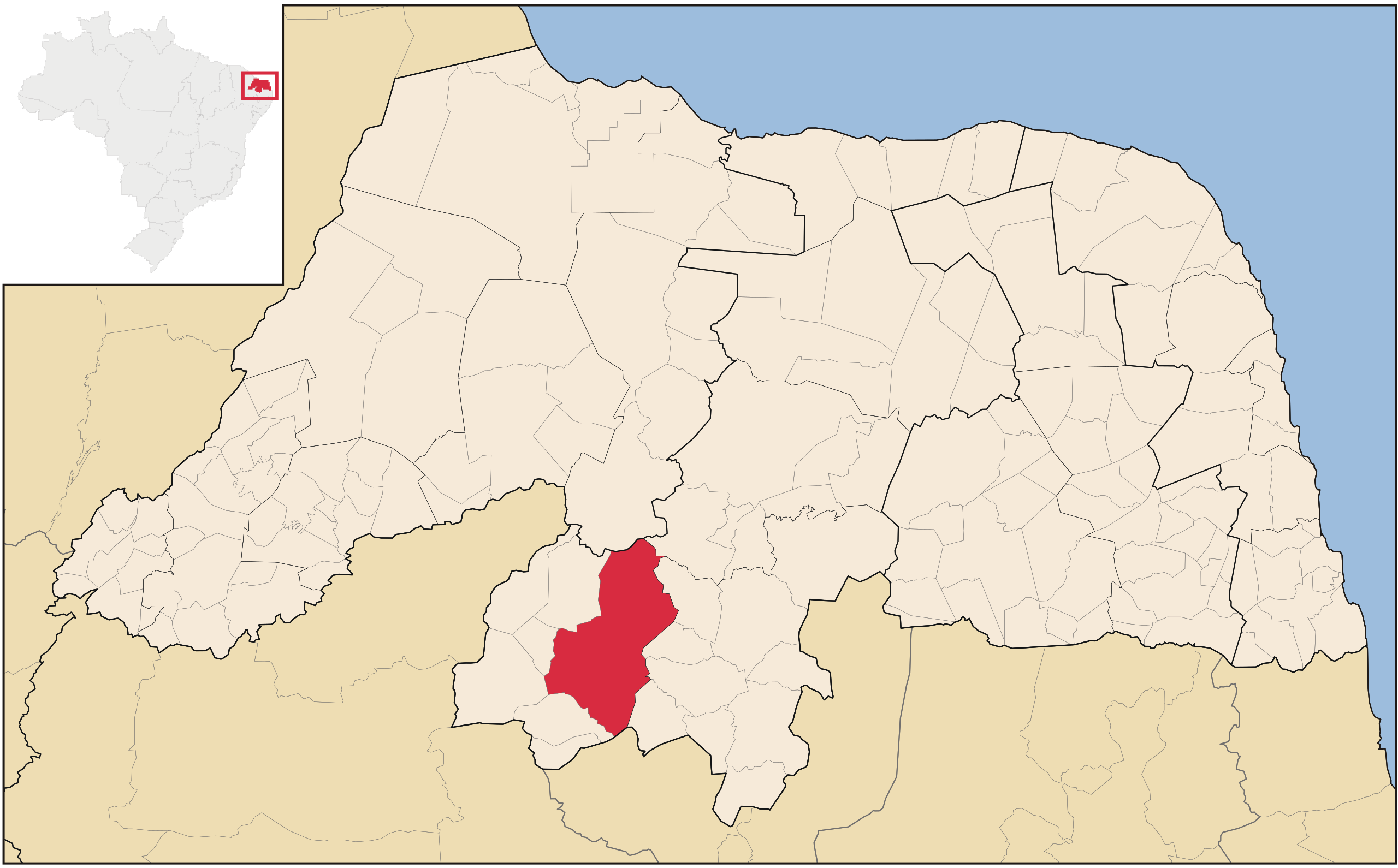 Map of Rio Grande do Norte highlighting Caicó. |