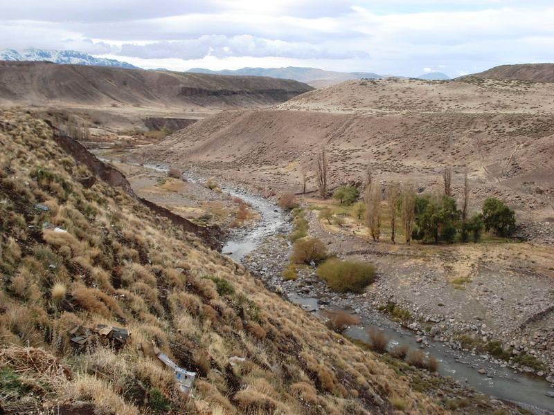 Español: Curso del río Lileo en su paso por la localidad de Los Miches en el norte de la provincia del Neuquén. |