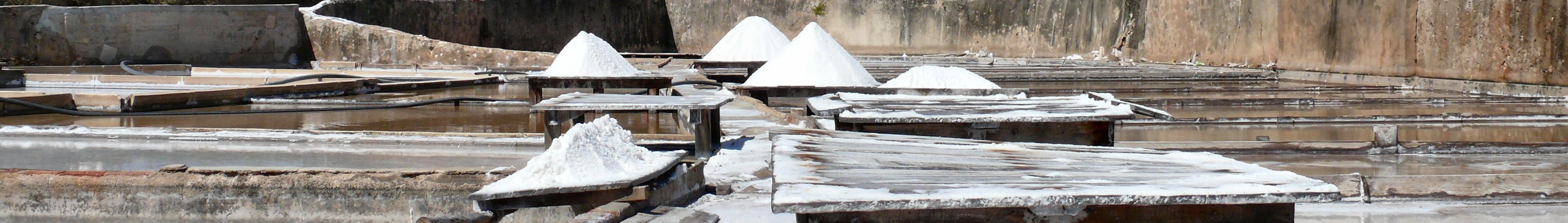 Salt evaporation pounds (Marinhas do Sal) at Rio Maior, District of Santarem, Alentejo region, Portugal, August 2008. These "salinas" are remarquable for 2 reasons: 1) Their location is deep inside the land, being about 30km away from the ocean coast. Underground natural channels and networks bring the salty waters from the Atlantic until there. 2) Their prehistoric age: archaeological researchs found evidences of salt harvesting dating from the neolithic period. |