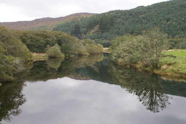 English: River Glass at Struy Living up to its name on a very calm day; a few hundred metres further on the Glass joins with the Farrar to form the Beauly. |