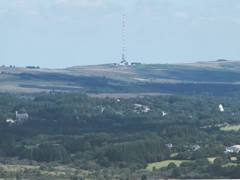 Français : Le Roc'h Tredudon surmonté de son émetteur de télévision dans les Monts d'Arrée |