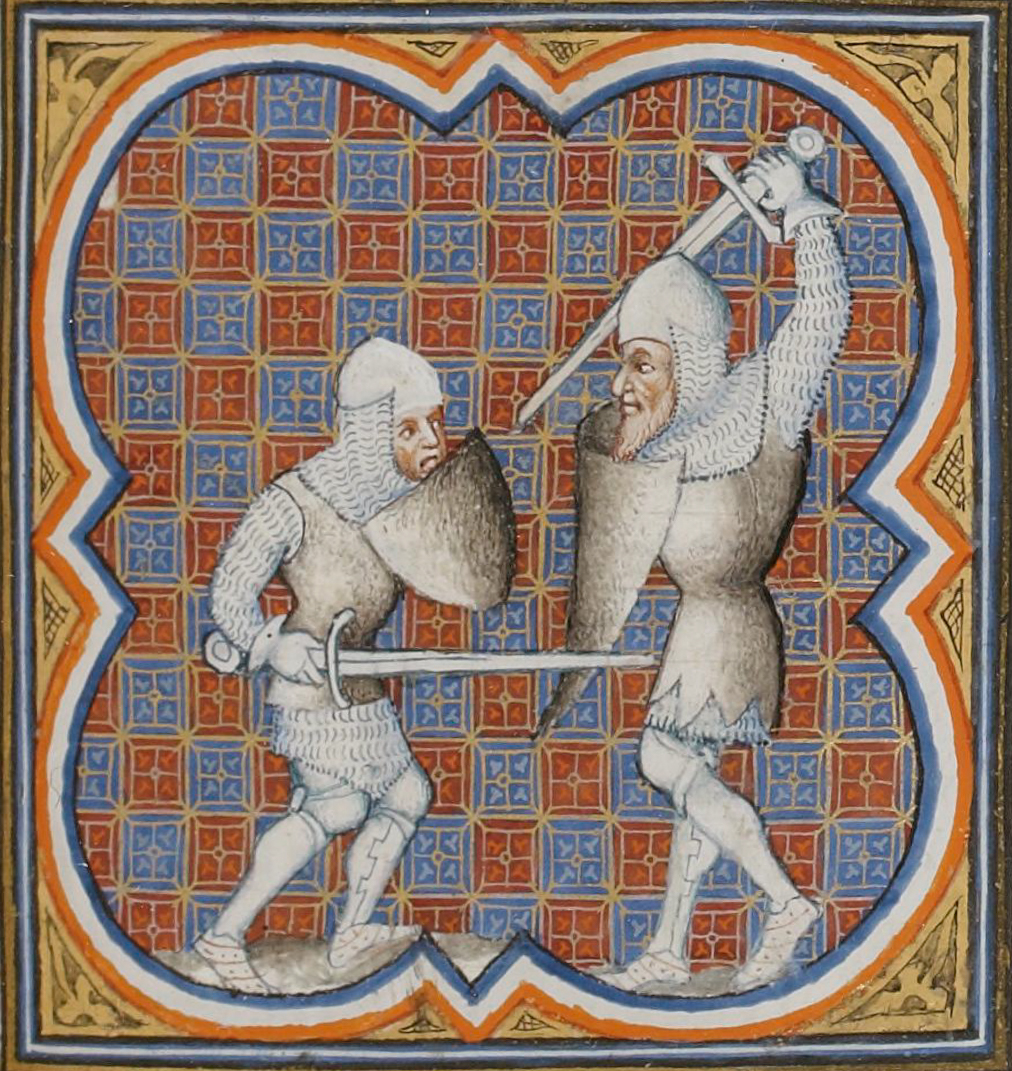 Español: Roldán luchando contra el gigante Ferragus Italiano: Orlando e Ferraù (Grandes Chroniques de France, XIV sec.) |