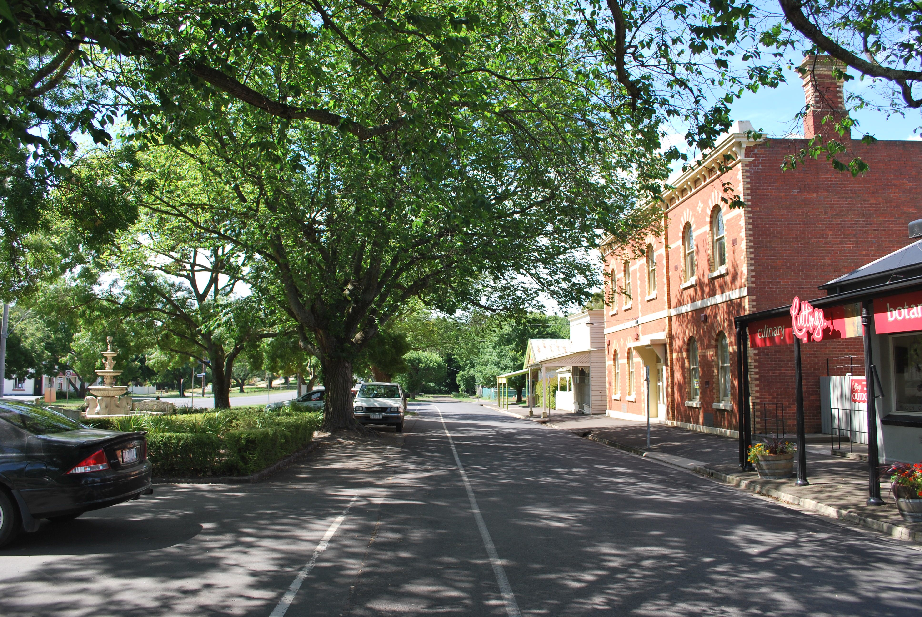 English: Service lane on the main street of en:Romsey, Victoria |
