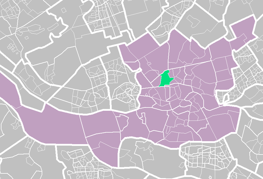 (Dutch) English: Blijdorp (light green), quarter of Rotterdam (purple), Netherlands |