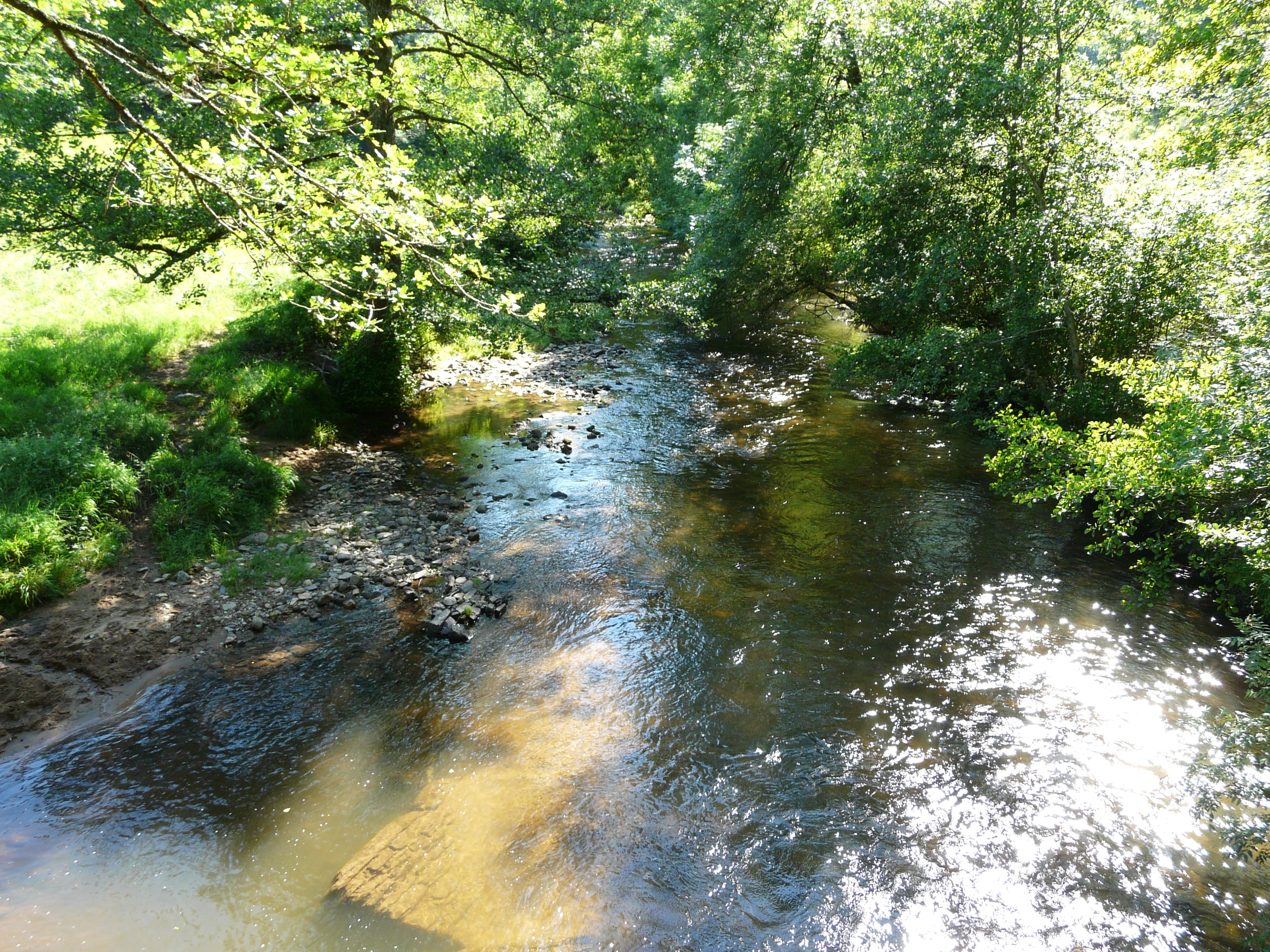 Français : La Rouanne en aval du pont des Rasclies, Dampniat, Corrèze, France |
