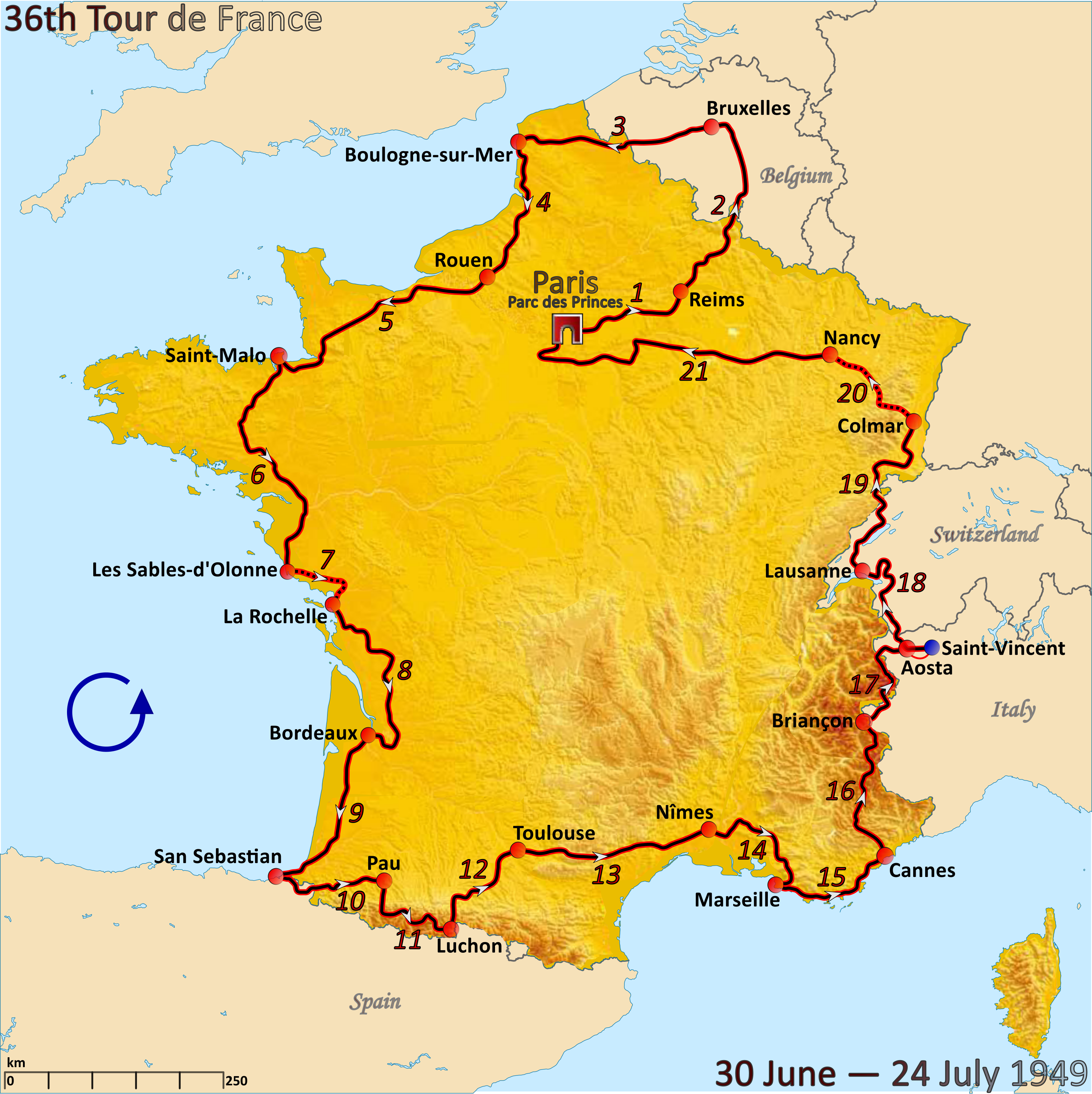 ملف:Route of the 1949 Tour de France.png
