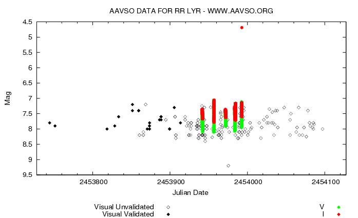 - 2007-01-27 00:47 Rlmerriman 697×425× (24077 bytes) Light curve of RR Lyrae. Generated from http://www.aavso.org/data/lcg/ and used with permission.