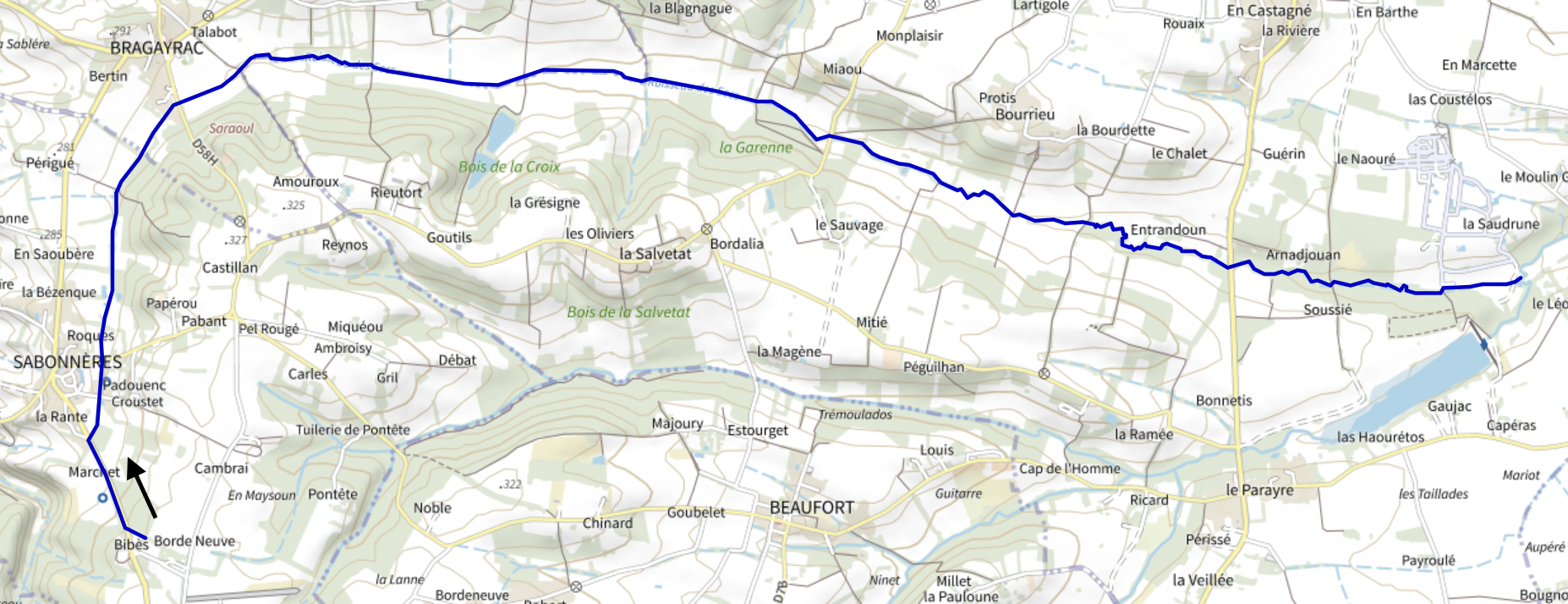 Français : Carte OSM du Ruisseau de Bragayrac, France |