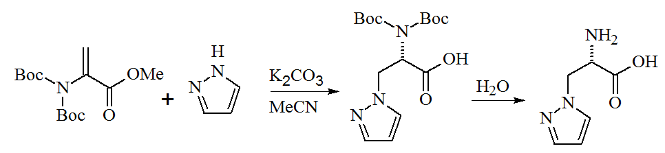 ملف:Síntesis de β-Pirazol-1-ilalanina.png