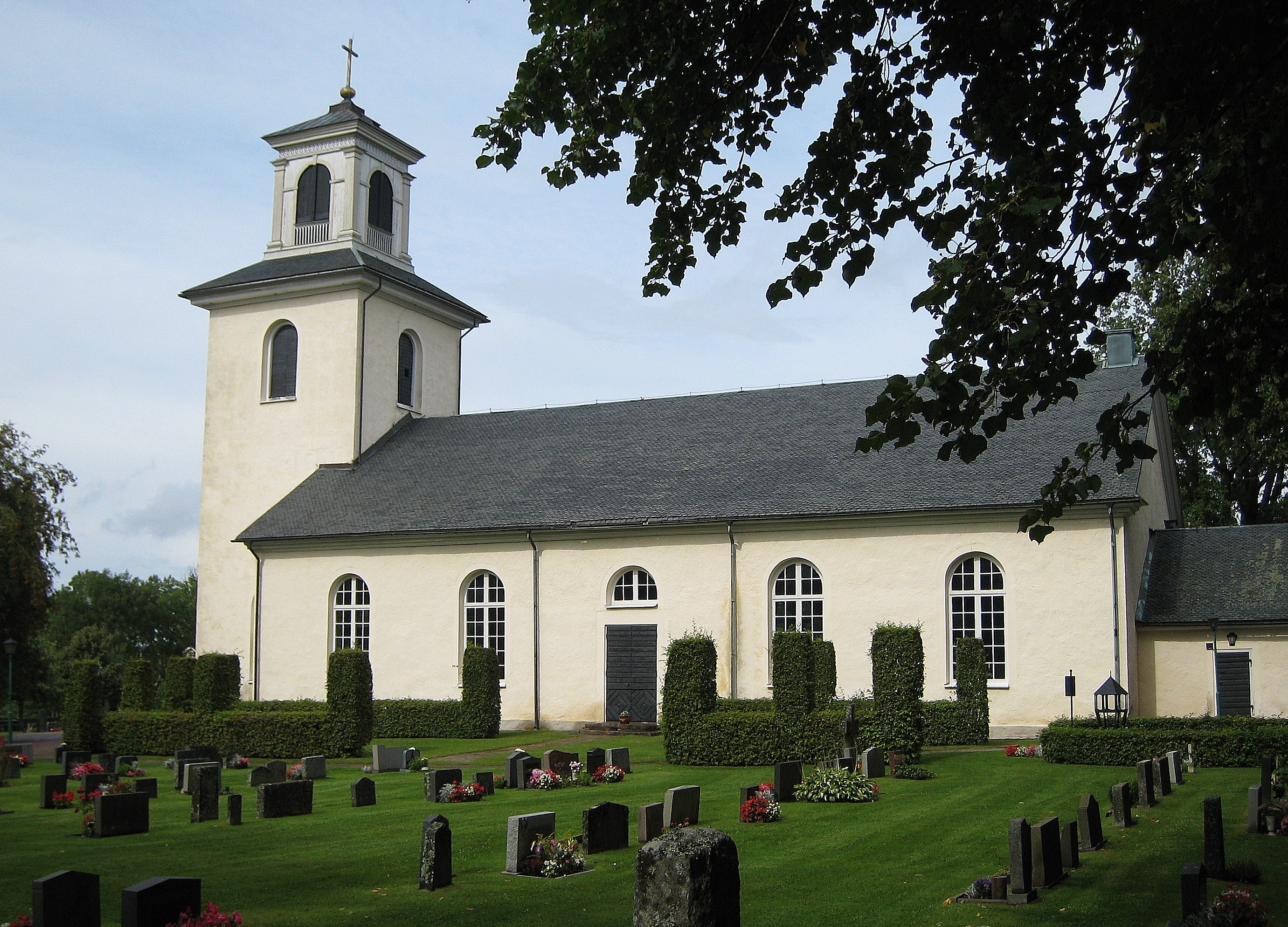 Svenska: Södra Sandsjö kyrka.Kyrkobyggnaden uppfördes 1836-1837 i empirestil efter ritningar av arkitekt Samuel Enander. Kyrkan invigdes av biskop Esaias Tegnér den 9 september 1838. English: Södra Sandsjö Church.The church building was built in 1836-1837 in empire style by architect Samuel Enander. The Church was consecrated by Bishop Esaias Tegnér 9 september 1838. |