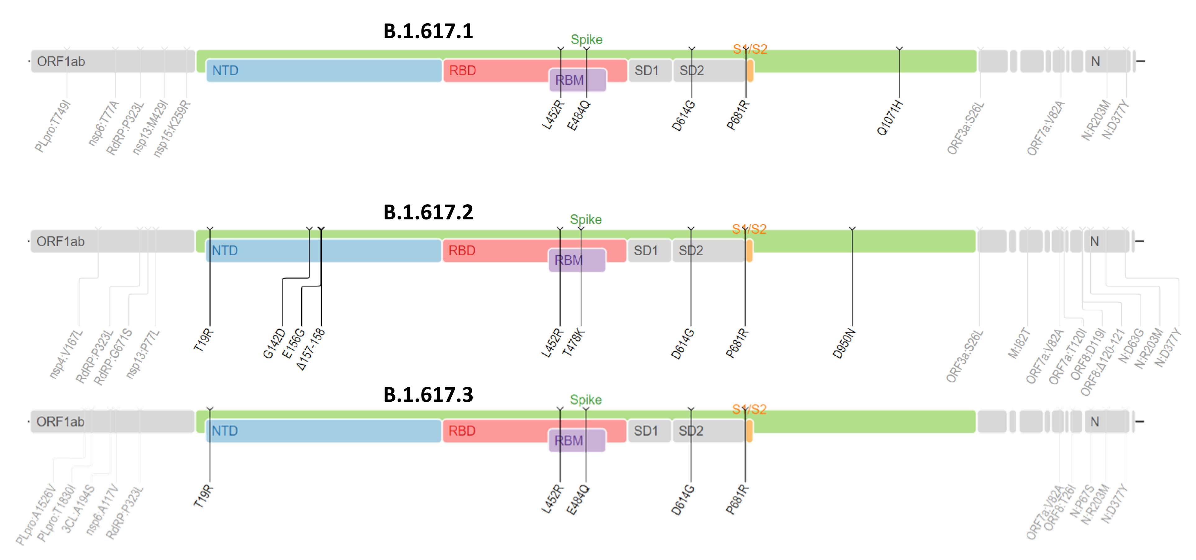 | Source | https://covdb.stanford.edu/page/mutation-viewer/ B.1.617.1, B.1.617.2, B.1.617.3 Lineage Reports |