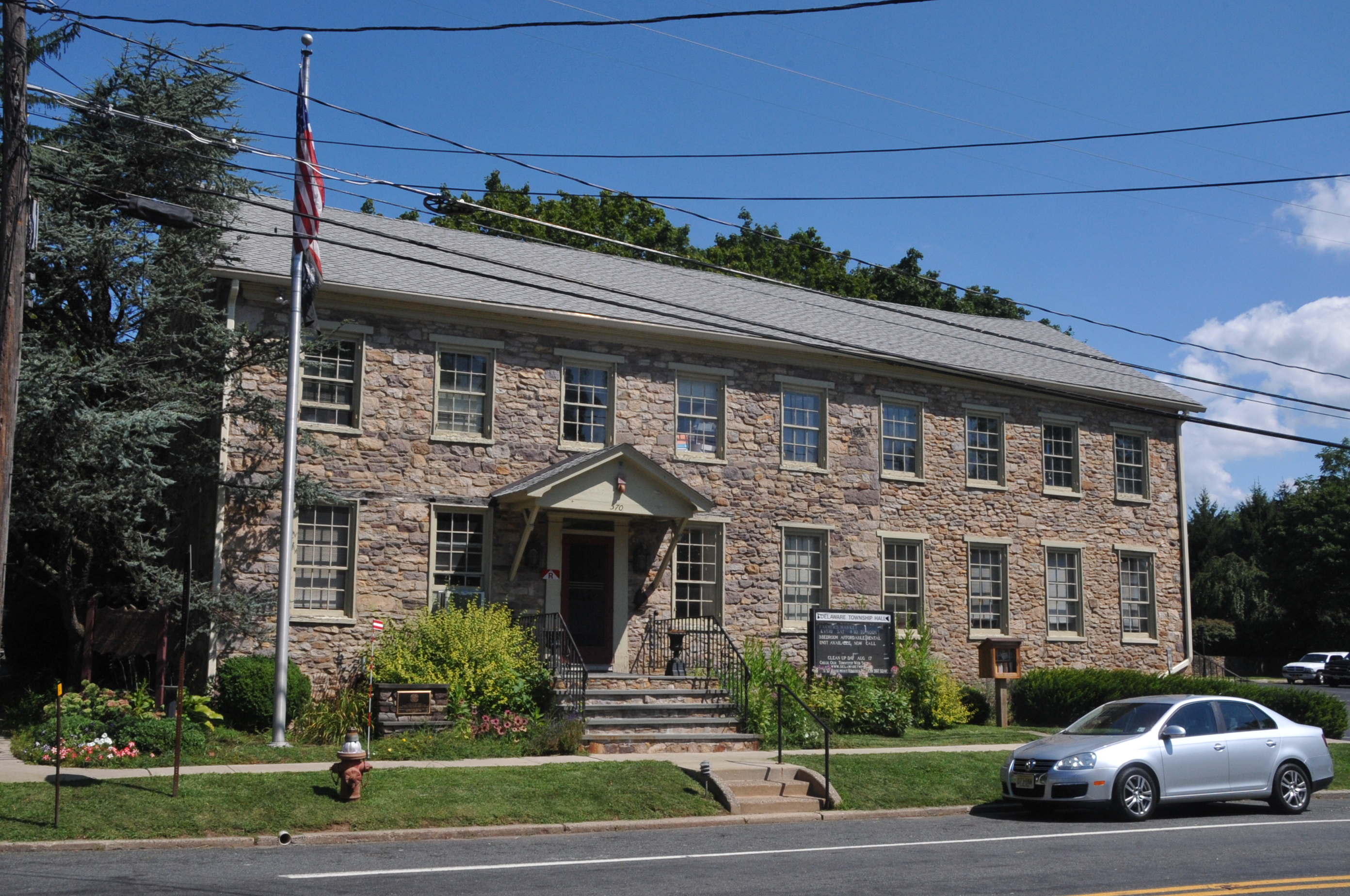 English: Delaware Township Municipal Building started in the late 18th century as a tavern and later a hotel. It became the municipal building in the mid 20th century. |