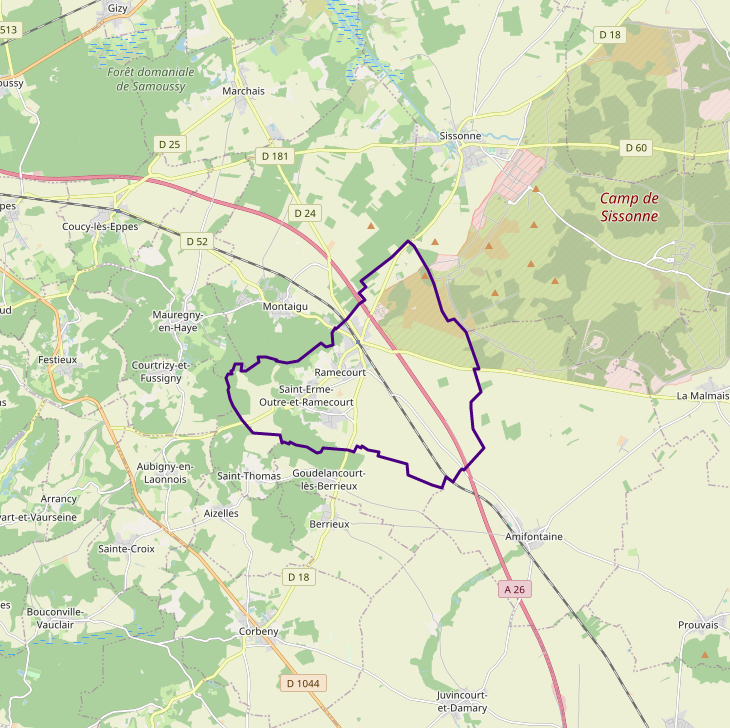 Français : Carte OSM de Saint-Erme-Outre-et-Ramecourt, Aisne |