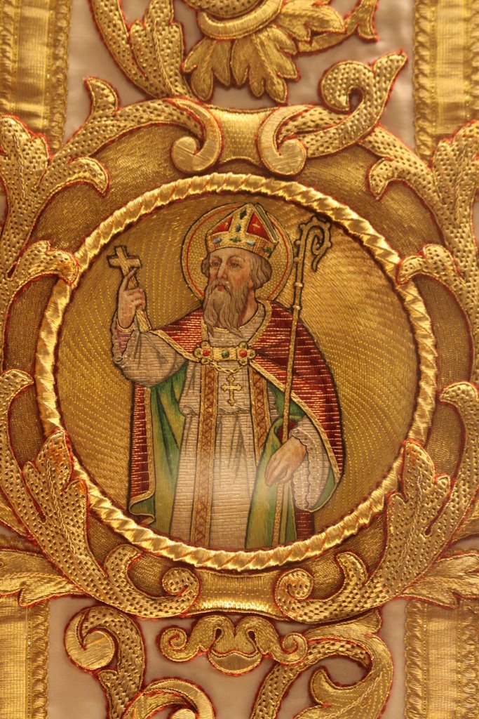 English: Saint Rumbold on a Chasuble in the Basilica of Our Lady of Hanswijk, Mechelen, Belgium. |