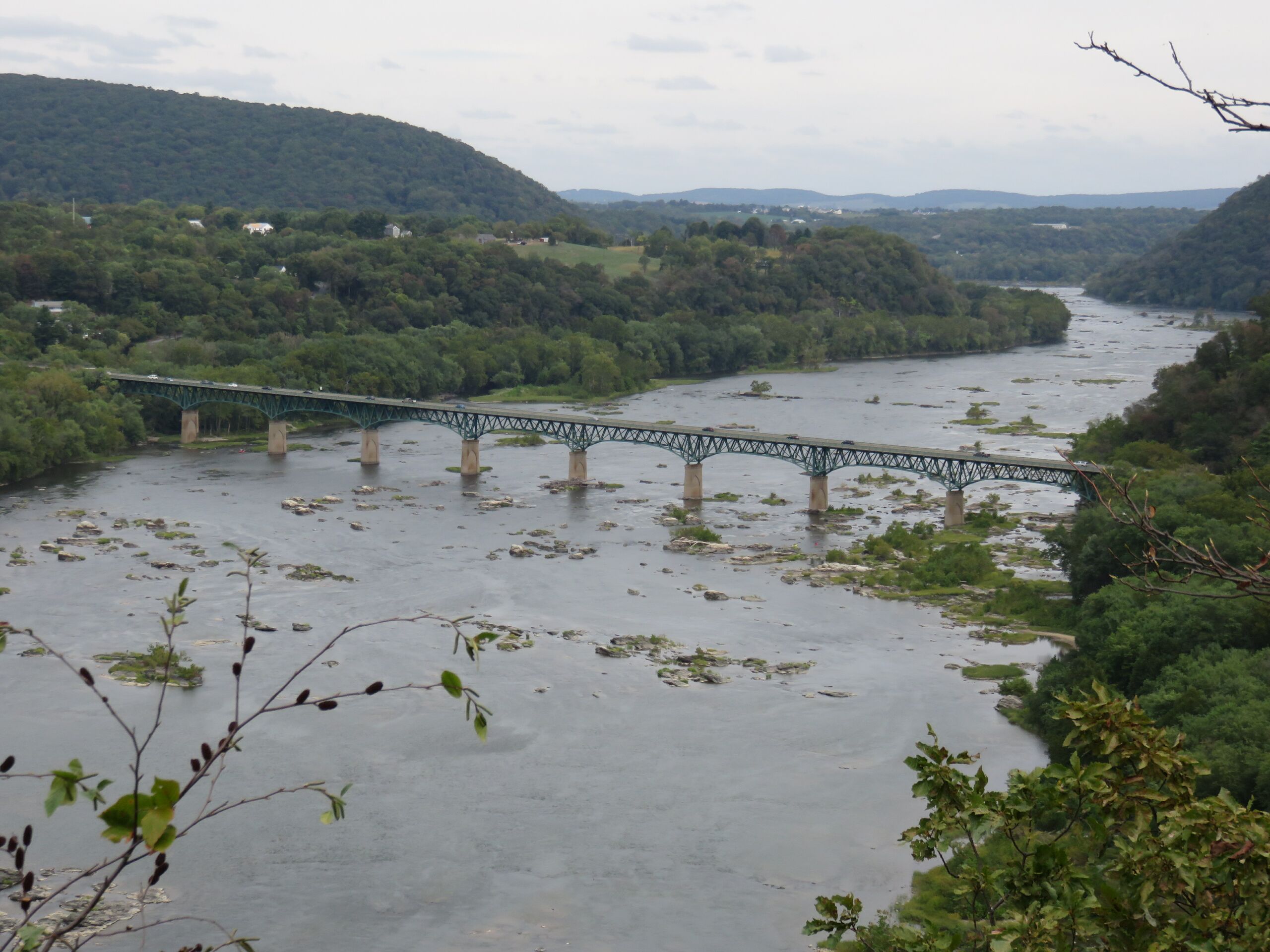 English: The Sandy Hook Bridge carrying US-340 over the Potomac River in Sandy Hook, Maryland, viewed from Loudon Heights in 2015 |