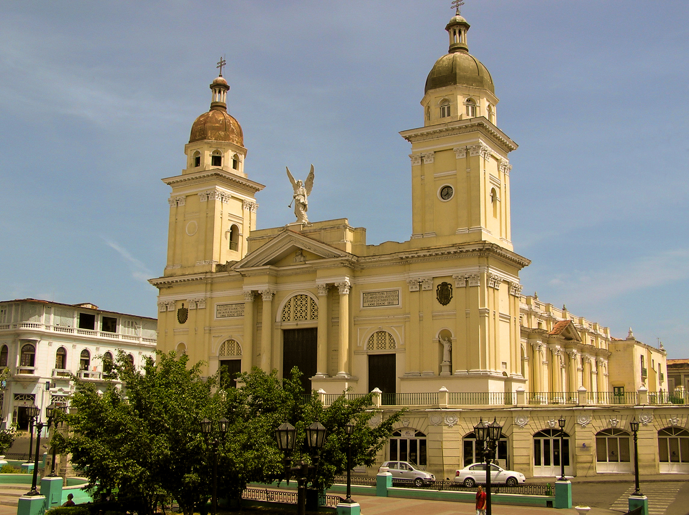 English: Neoclassical church facade of the colonial era Catedral Nuestra Señora de la Asunción — in Santiago de Cuba, southeastern Cuba. |