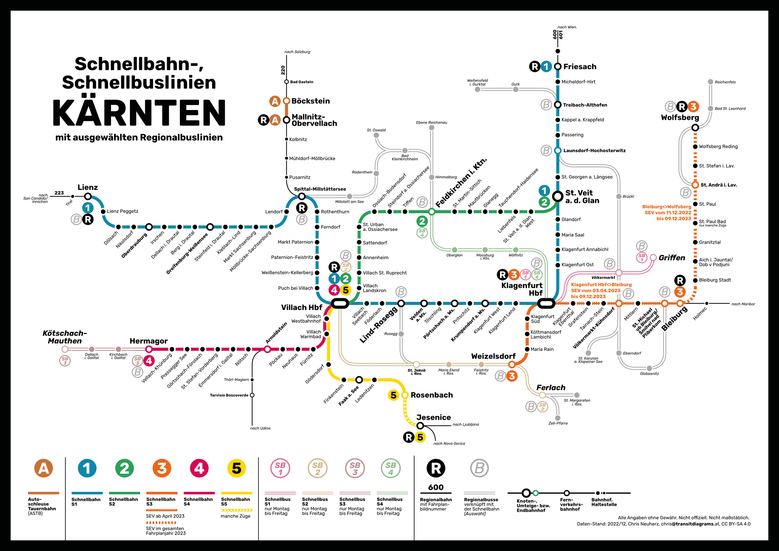 Deutsch: Systemkarte der S-Bahn in Kärnten |
