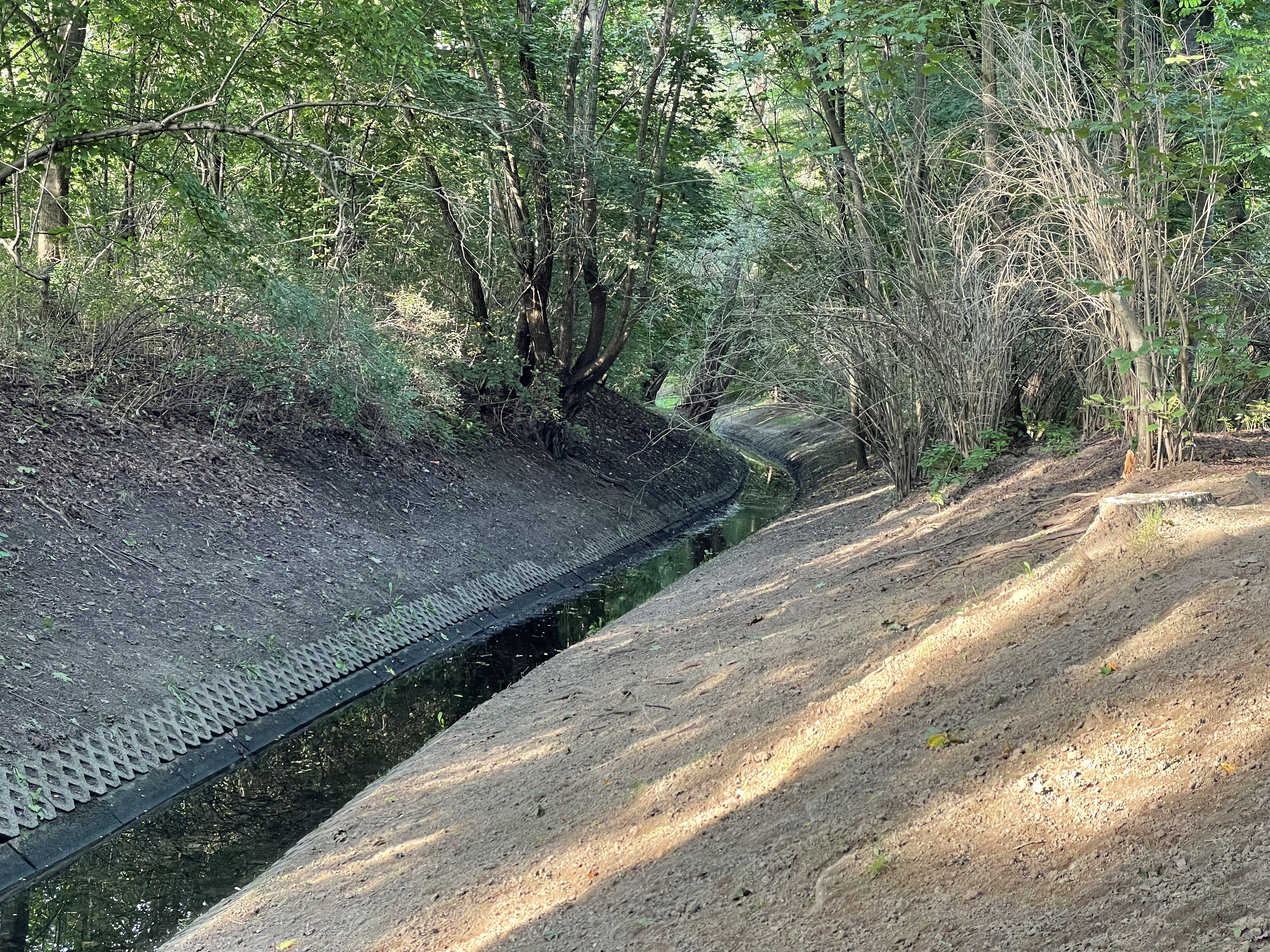 Deutsch: Schwarzer Graben im Volkspark Rehberge, Blickrichtung nordwärts (entgegen der Flussrichtung) |