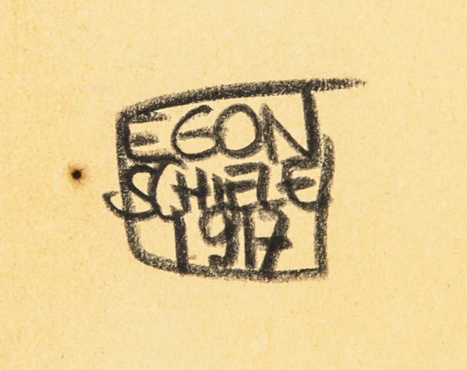 Français : Signature et date apposés sur un de ses dessins par le peintre Egon Schiele. |