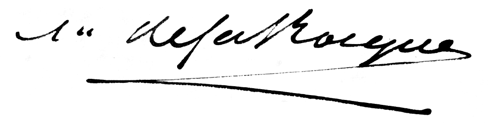 Français : Signature de l'architecte diocésain puis des monuments historiques Anthyme de la Rocque, au bas d'un plan de travaux de la cathédrale de Coutances. Archives nationales, cote CP/F/19/7691, consultable en ligne |