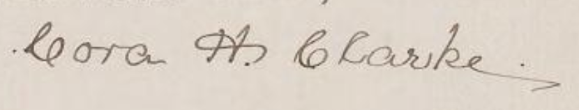 English: Signature of Cora Huidekoper Clarke |