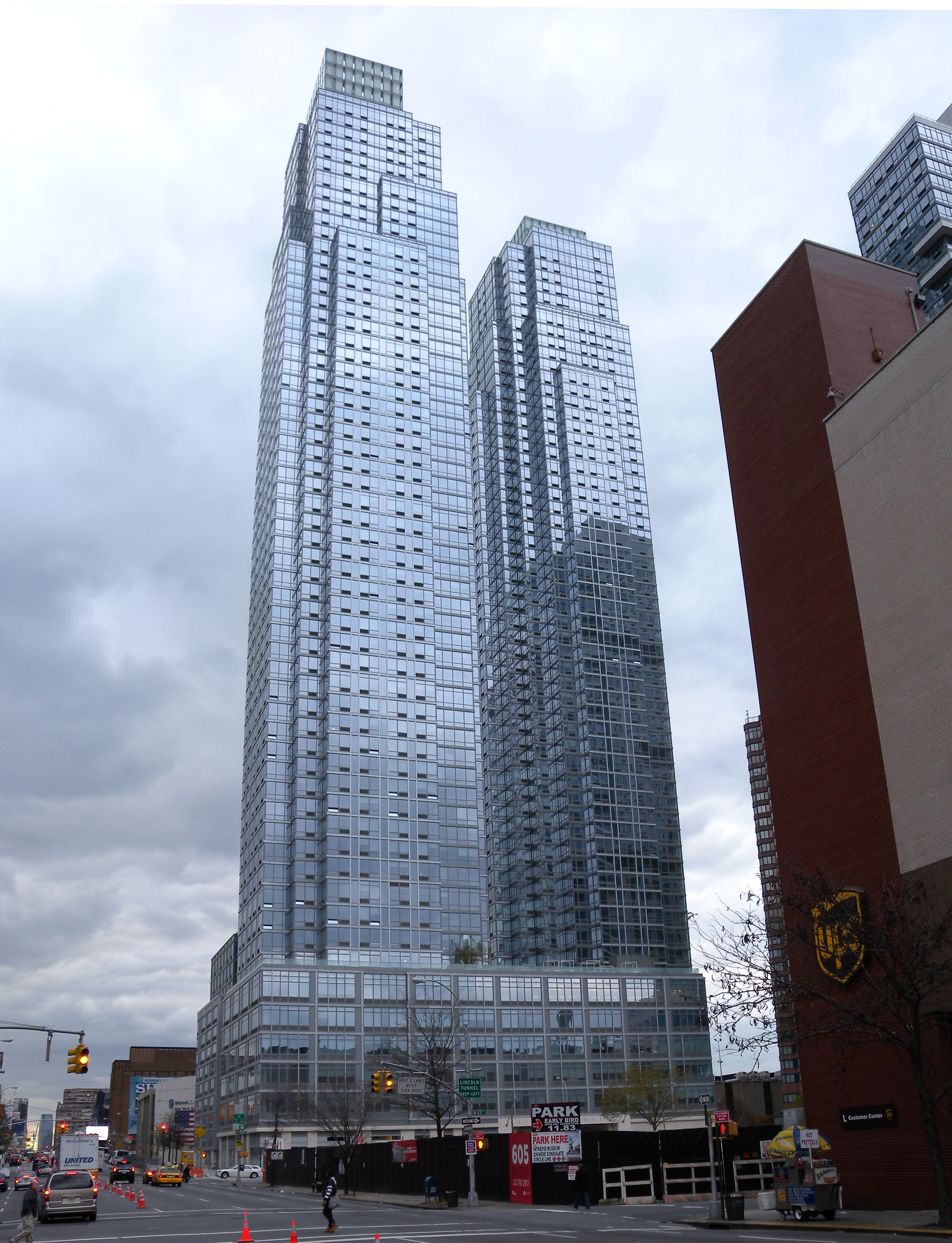 English: Looking southwest from 44th St and 11th Av at en:Silver Towers. See also File:Silver Towers jeh.JPG. |