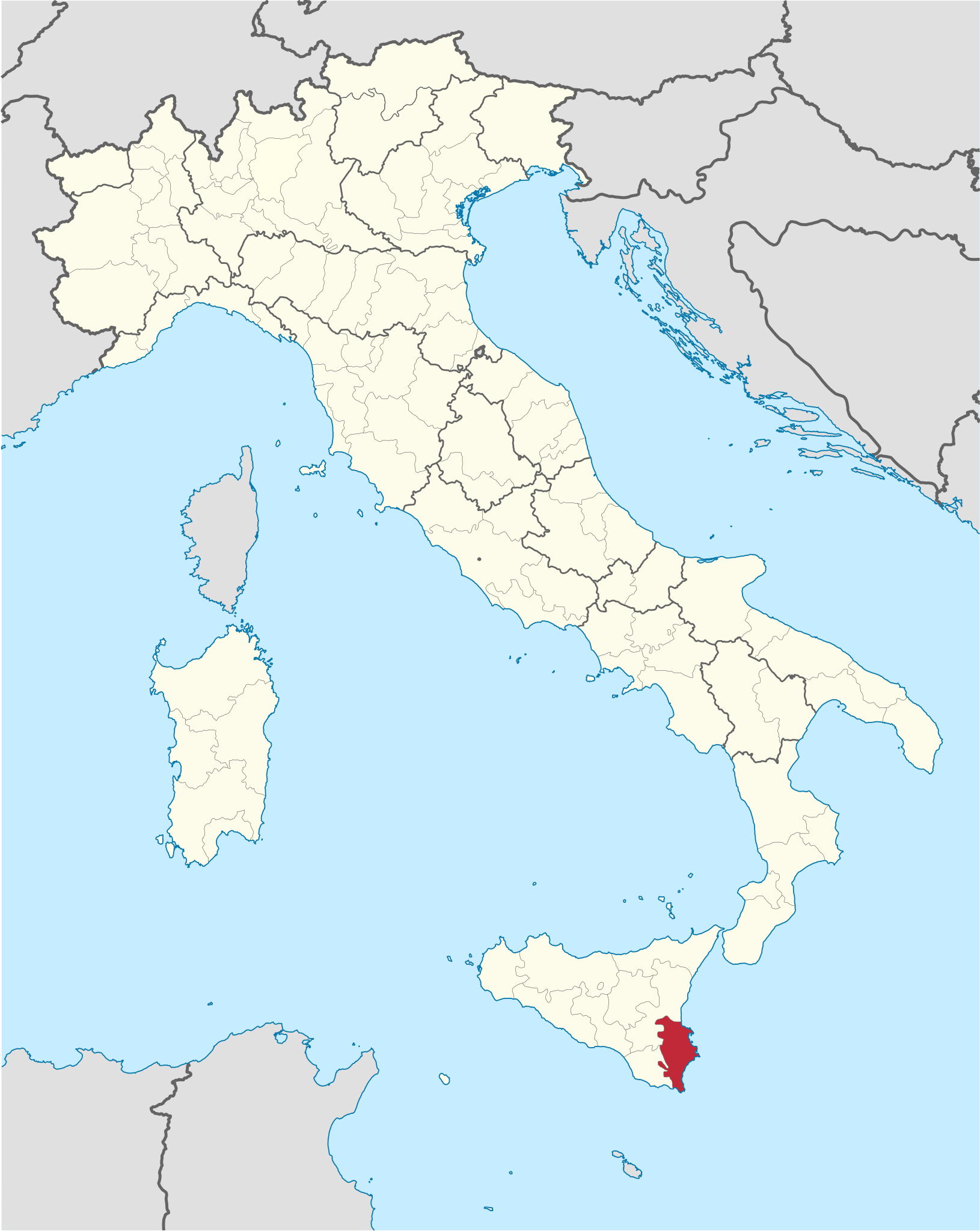 Italiano: Posizione della provincia di Siracusa in Italia (2018) |