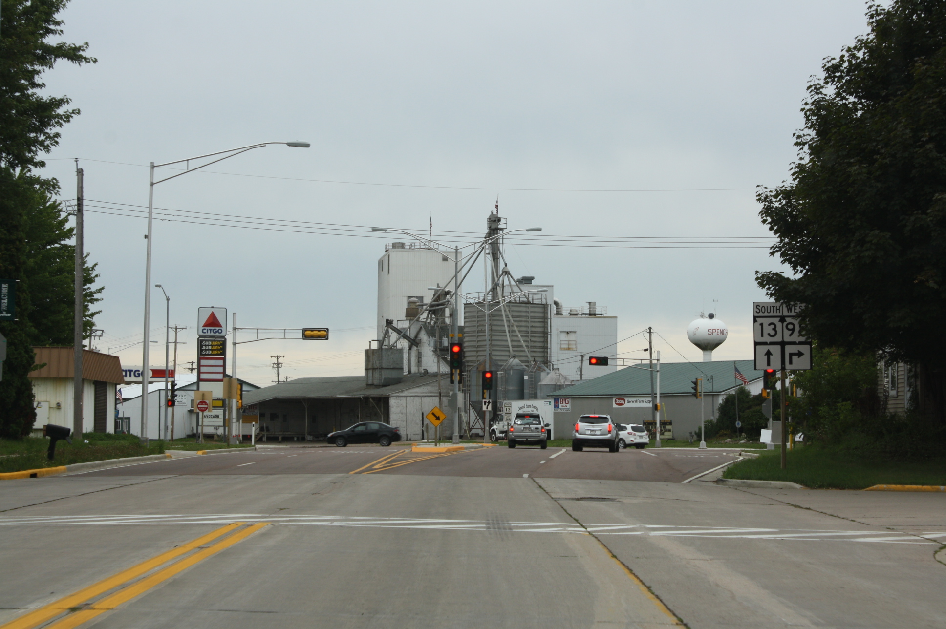 | Description | Looking south at downtown w:Spencer, Wisconsin on Wisconsin Highway 13 / Wisconsin Highway 98. قالب:Commonist | |