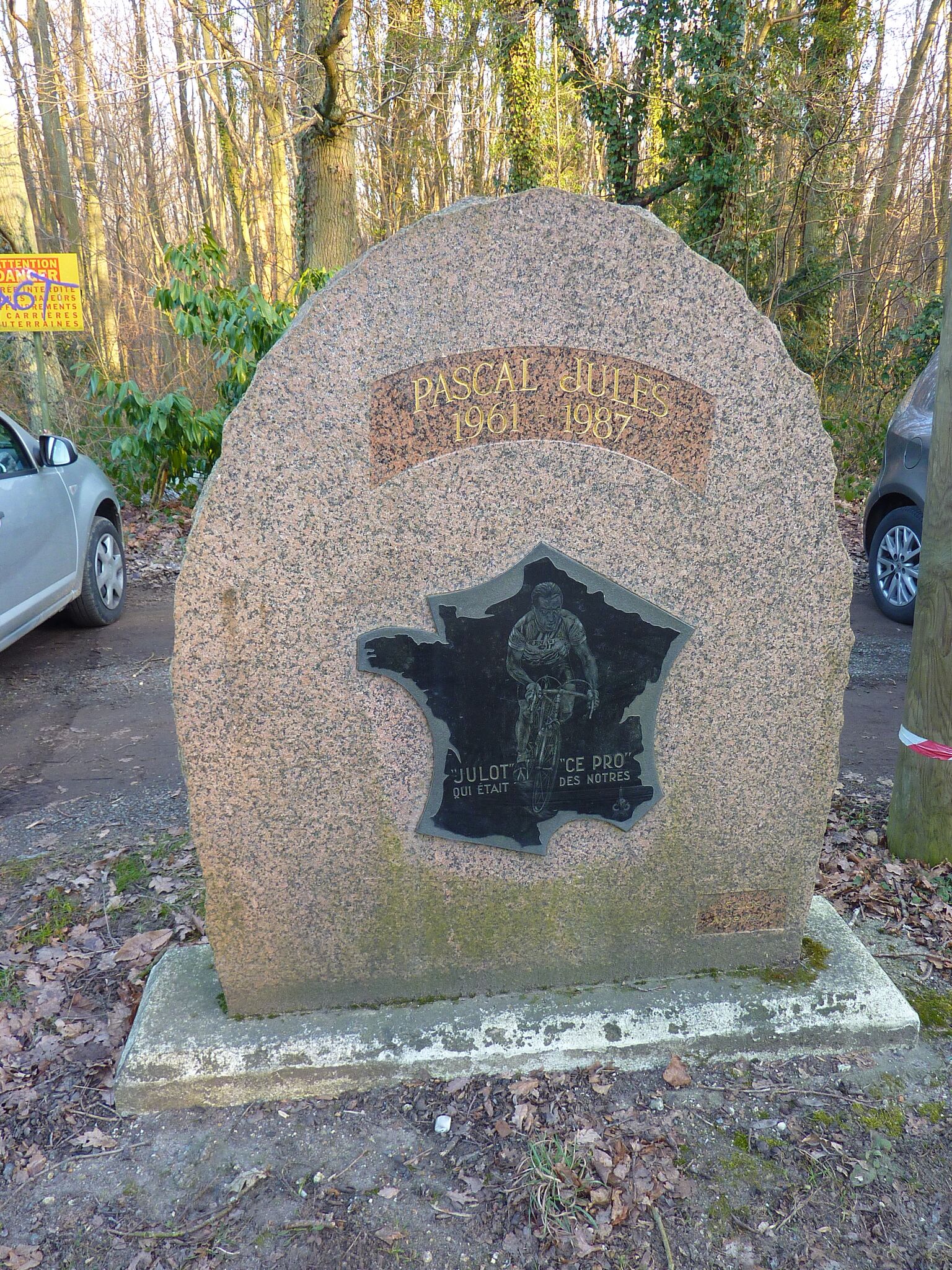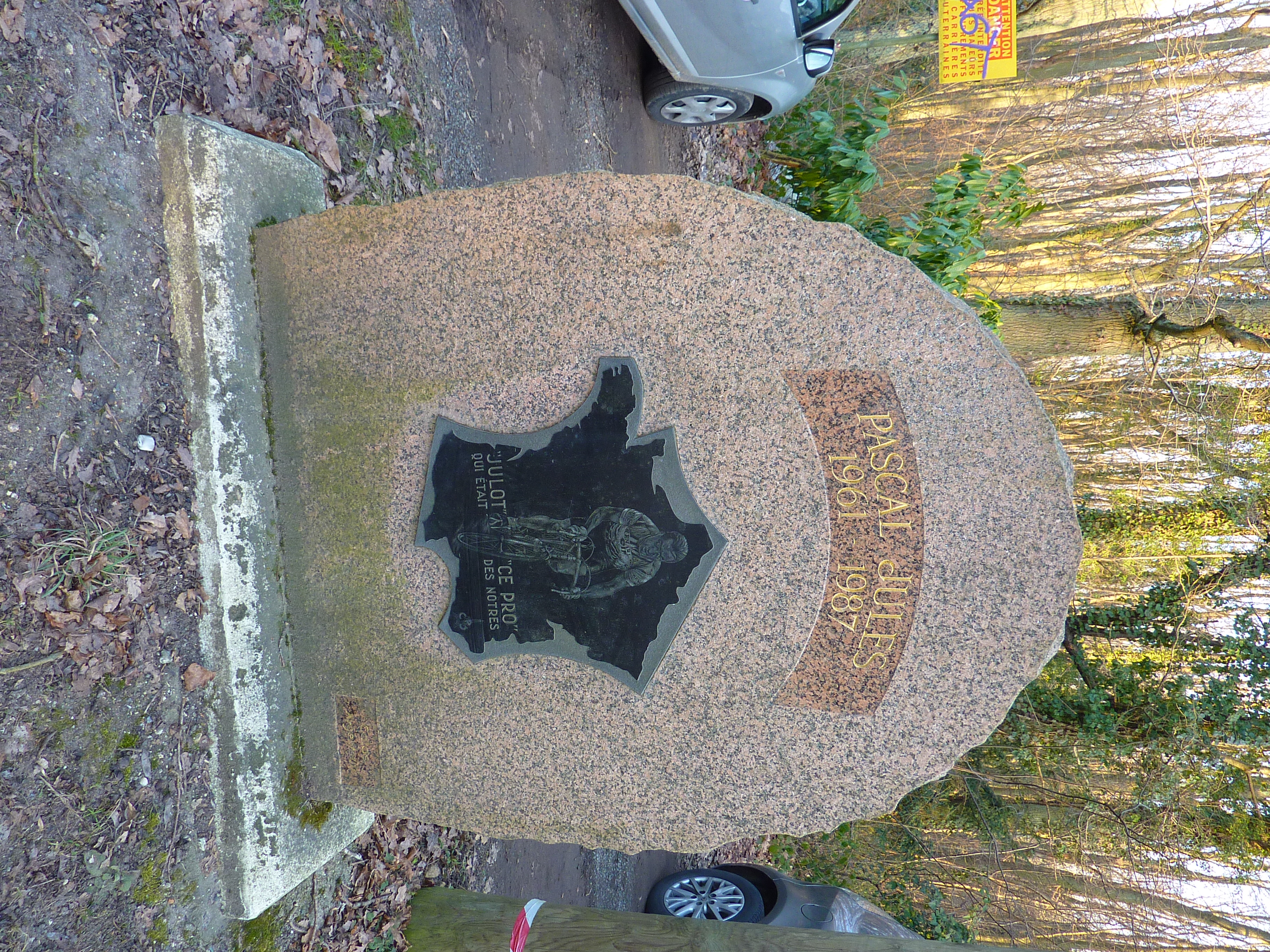 Français : Stèle du cycliste Pascal Jules à Chanteloup les Vignes |