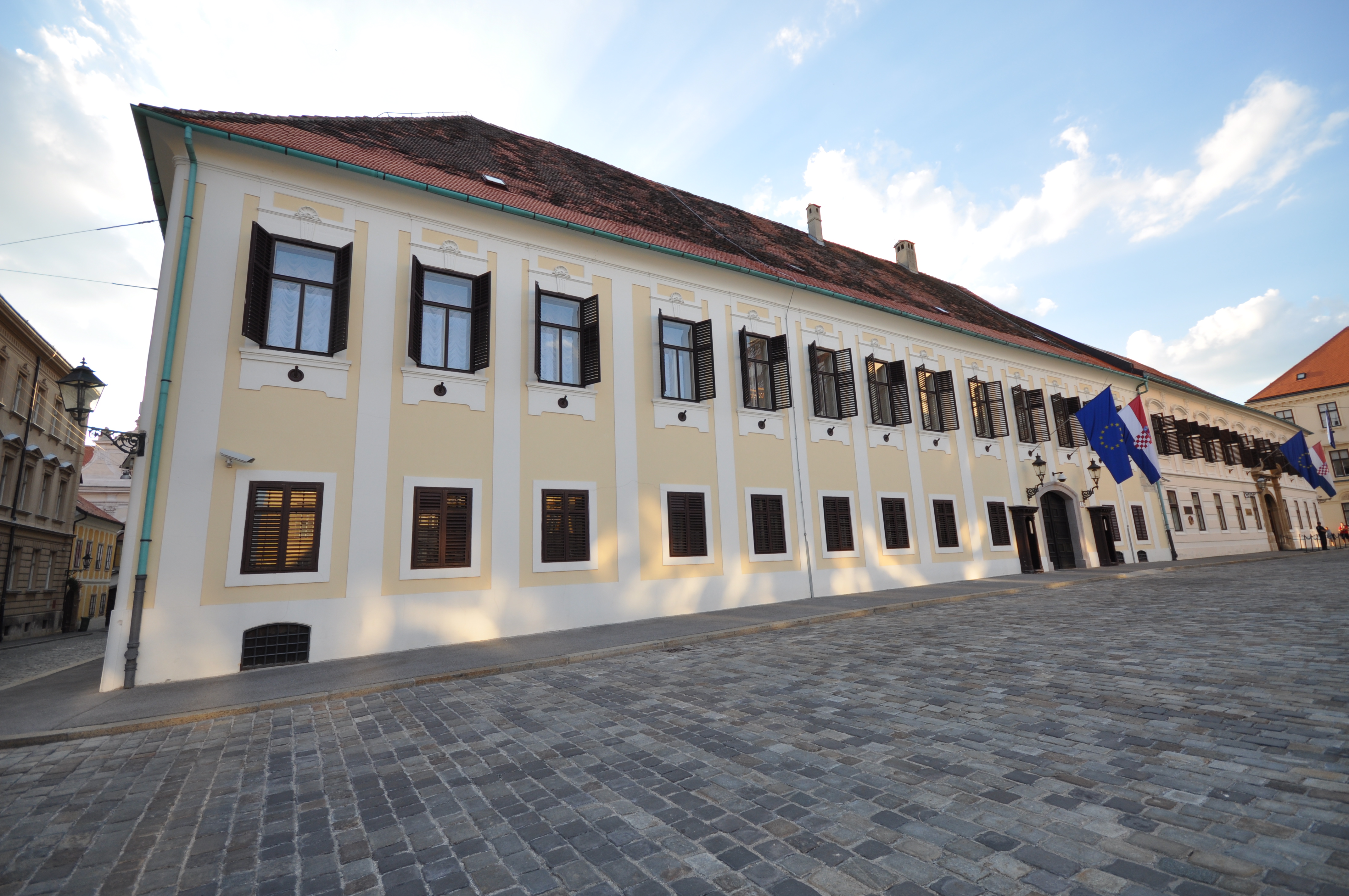 St. Mark's Square (Croatian: Trg svetog Marka) is a square located in the old part of Zagreb, Croatia. In the center of square is located St. Mark's Church. The square also sports important governmental buildings: Banski dvori (the seat of the Government of Croatia), Croatian Parliament (Croatian: Hrvatski sabor) and Constitutional Court of Croatia. On the corner of St. Mark's Square and the Street of Ćiril and Metod is the Old City Hall, where the Zagreb City Council held its sessions. In 2006 the square has undergone through renovation project. Since August 2005, the Government forbid any form of protests on St. Mark's square which caused many controversies in Croatian's "civil society". This ban was partially lifted in 2012. The square is also the site of the inaugurations of Croatia's presidents. Franjo Tuđman took his oath as President of the Republic in 1992 and 1997, Stjepan Mesić in 2000 and 2005 and Ivo Josipović in 2010 [Wikipedia.org] |