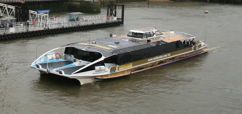 | Description | A Thames Clipper catamarn passes St Katharine pier on the River Thames, London, UK. |
