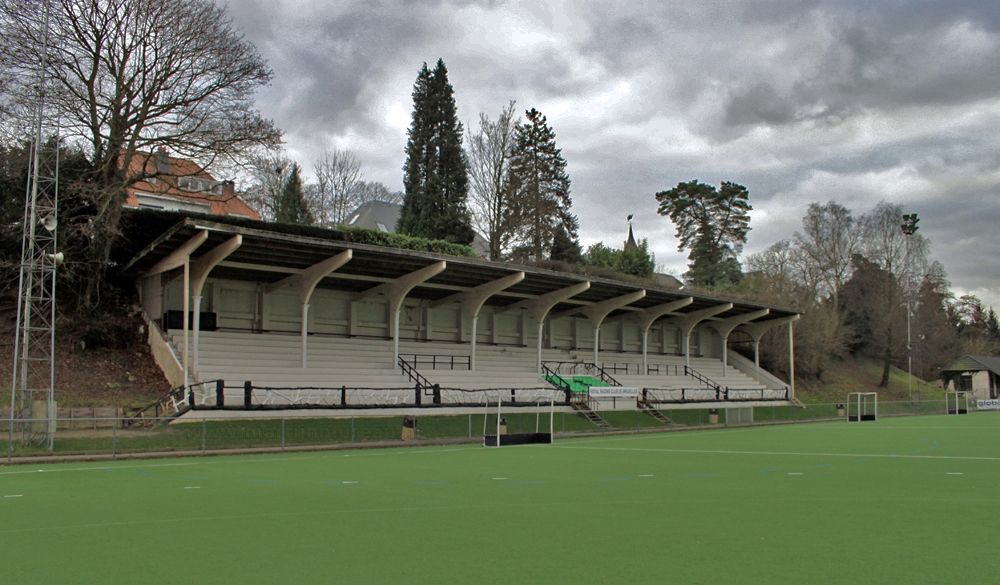 English: The main stand of the defunct stadium Stade du Vivier d'Oie (NL: Stadion de Ganzevijver) in Ukkel, Brussels. Previous home of Racing Club de Bruxelles.