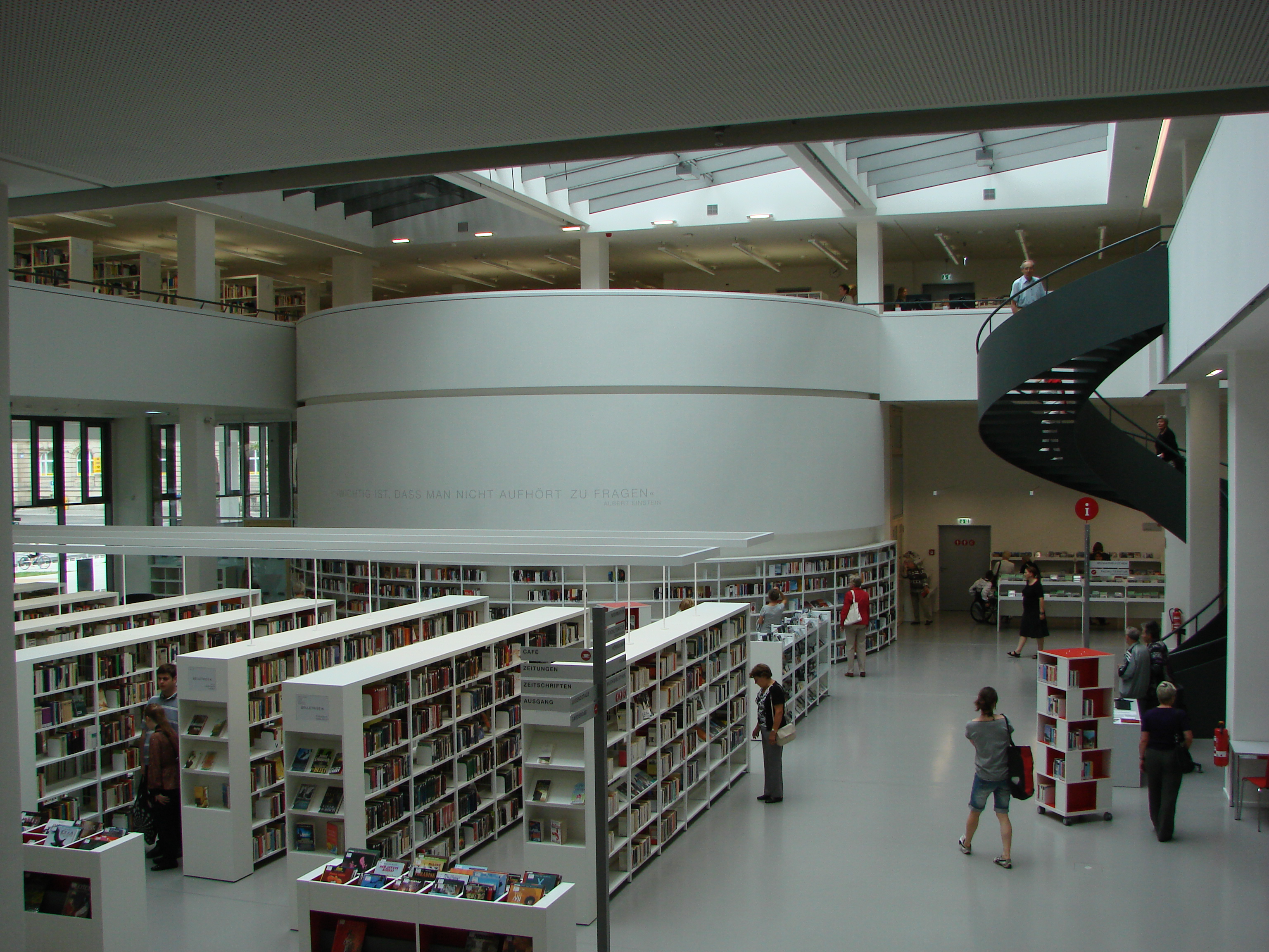 Deutsch: Freihandausleihe der Stadt- und Landesbibliothek Potsdam im Erdgeschoss am Tag der Neueröffnung, d. 13. September 2013 |