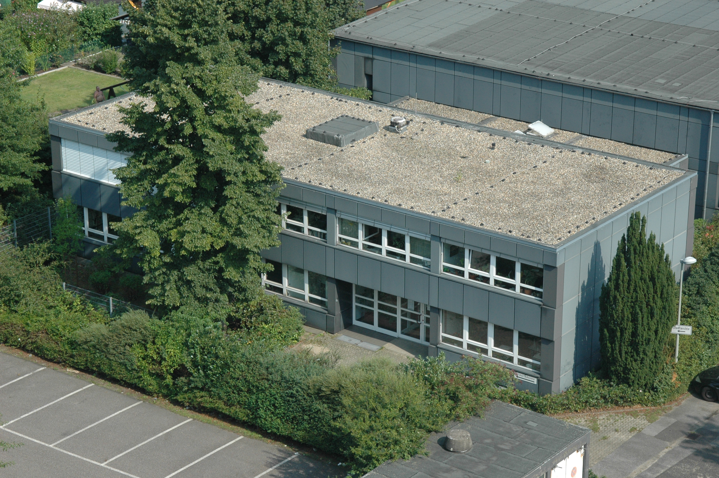 Deutsch: Verwaltungsgebäude des Stadtarchivs Krefeld, aufgenommen vom Dach des Stadthauses aus |