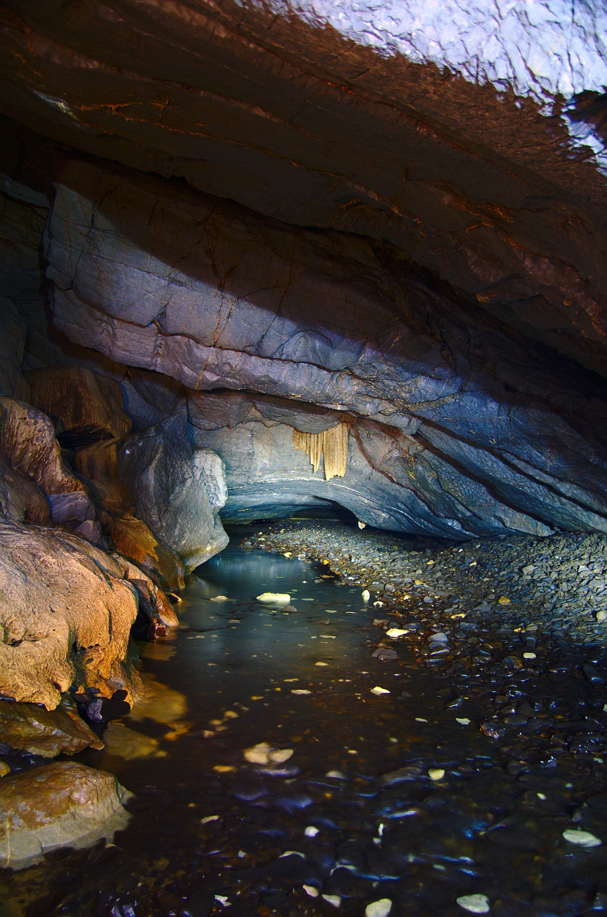 ملف:Stará Amatérská jeskyně - Bílá voda v Povodňové chodbě.jpg