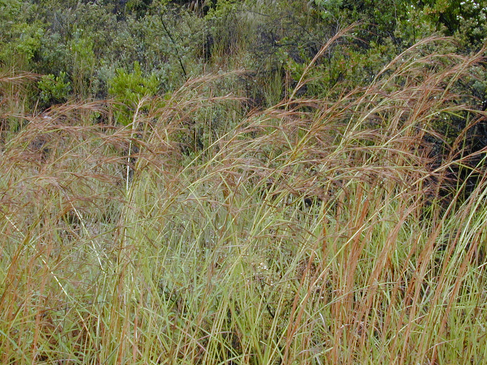 English: Hyparrhenia rufa (habit). Location: Hawaii, Hwy11 HAVO |